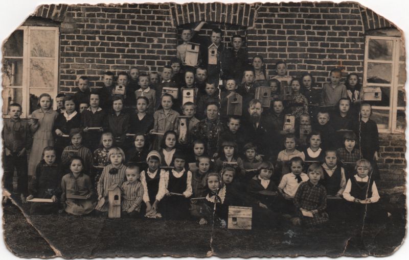 Tipiškas mokytojo paveikslas iš praeities: ankšta klasė, juodai dažyti suolai, o juose susėdę kaimo vaikai, pasidabinę namuose austais švarkeliais, šiurkščiais lininiais marškiniais ir margomis kartūno suknelėmis. Berniukų galvos būdavo nukirptos plikai, o visi pirštai išteplioti rašalu. Prie suolų kiekvienas turėjo tvarkingai sudėtas medines skryneles, skirtas knygoms.