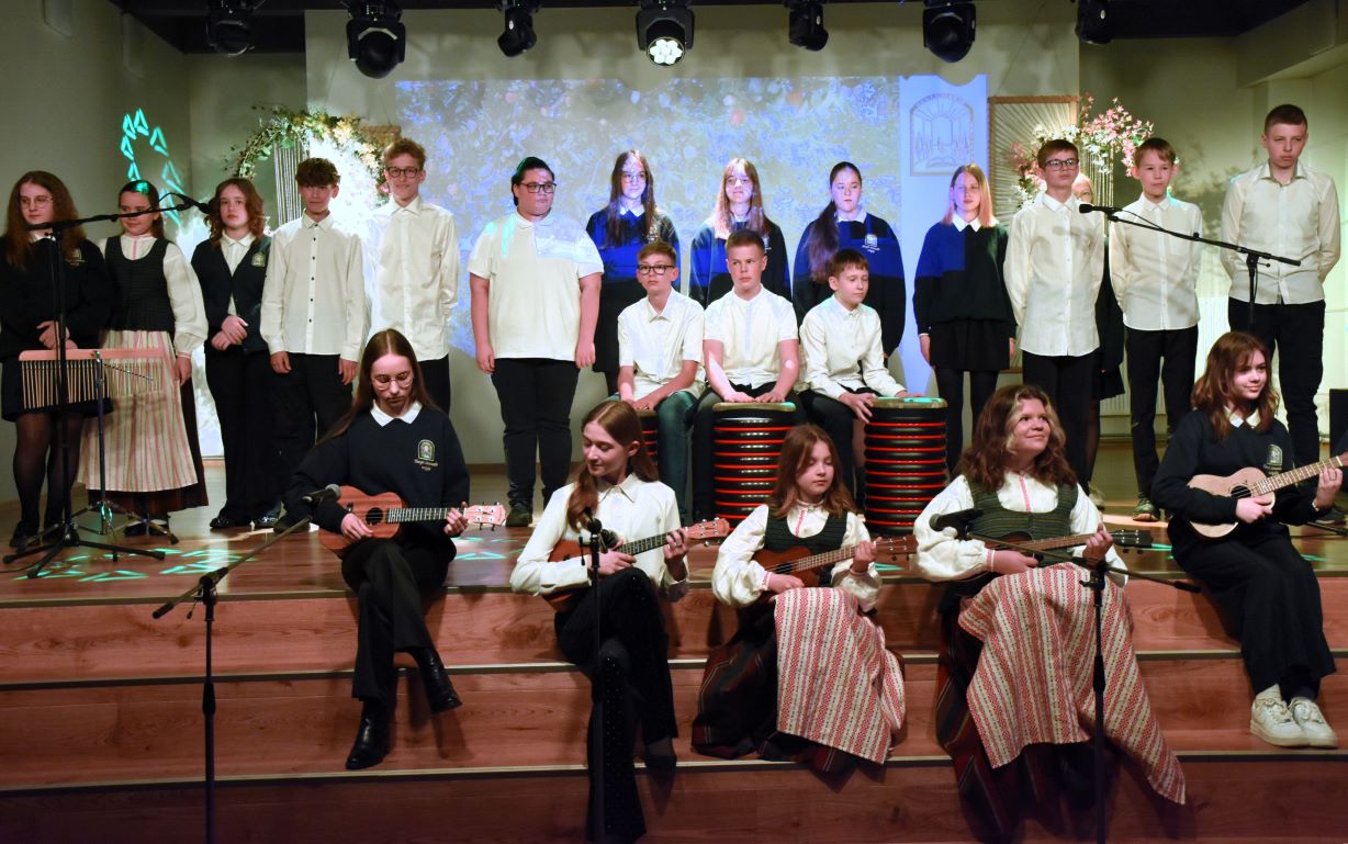 Šventinis mokyklos koncertas-minėjimas prasidėjo tylos minute, pagerbiant Amžinybėn iškeliavusius, mokyklą kūrusius ir puoselėjusius žmones.