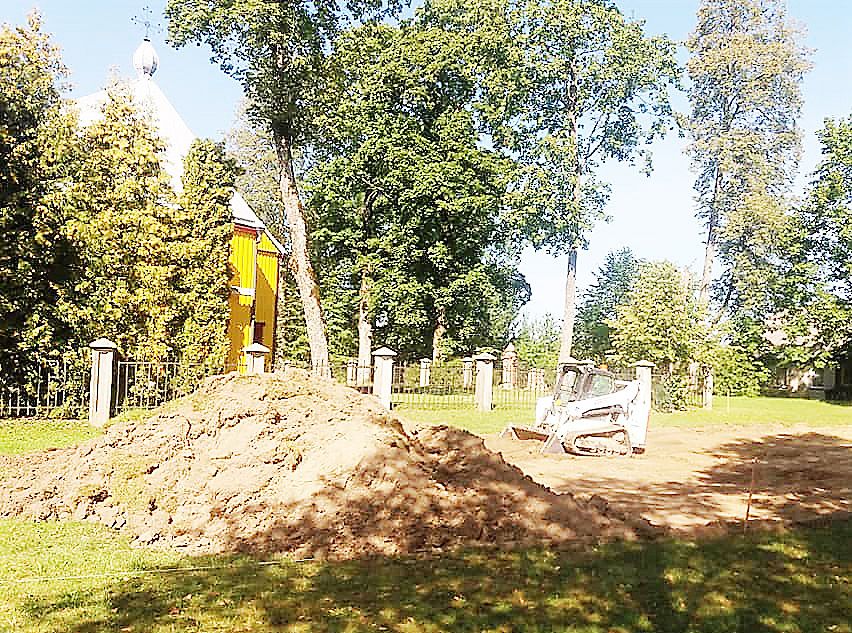 Te­ri­to­ri­jo­je tarp baž­ny­čios ir se­niū­ni­jos pra­dė­ta reng­ti poil­sio ir pra­mo­gų aikš­te­lė