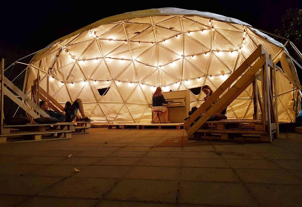 Tiesa, plungiškiai jau spėjo pastebėti, jog įspūdingiausiai jis atrodo naktį, kai įjungus apšvietimą šviečia iš tolo ir atrodo mistiškai, o kartu ir jaukiai. Tamsiuoju paros metu apšviestame kupole net muzika suskamba kitaip. Pianino garsai dar labiau užburia ypatingą vietą, į kurią užsukti gali kiekvienas.