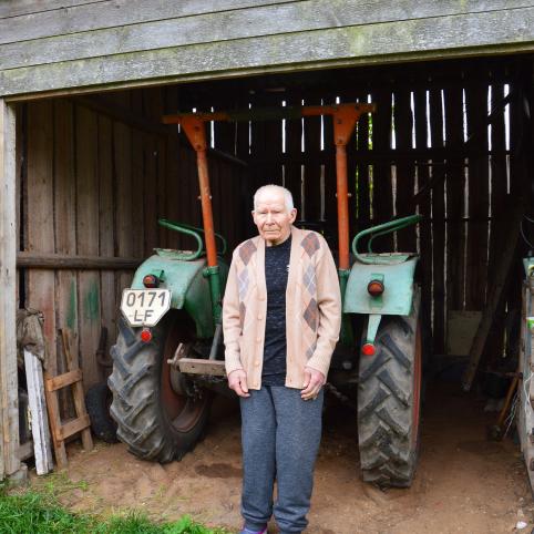 Kad tai – gry­na tie­sa, įsi­ti­ki­no­me jo pa­kvies­ti į dar­žinę ap­žiūrė­ti 1957 me­tais Vo­kie­ti­jo­je ga­min­to ir kuo pui­kiau­siai iki šiol vei­kian­čio trak­to­riaus, prie ku­rio bud­ri­kiš­kis ūkio dar­bams su­gal­vo­jo su­konst­ruo­ti spe­cialų ve­ži­maitį. Dar pra­ėju­siais me­tais su šiuo trak­to­riu­ku An­ta­nas pa­ts ir bul­ves dar­že pa­si­so­di­no.