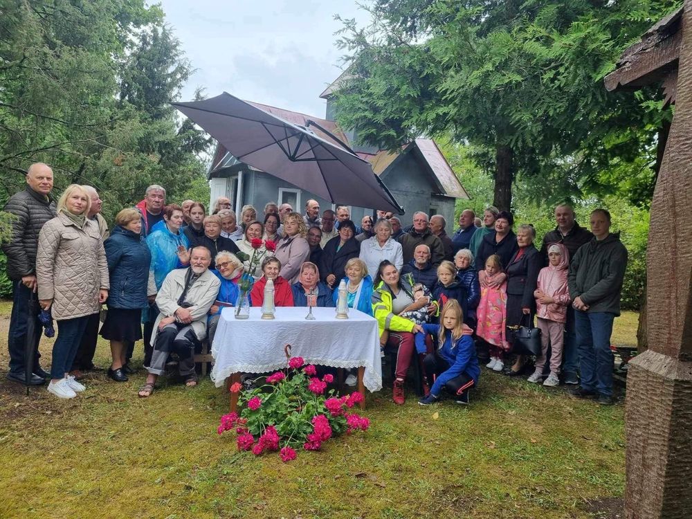 Nepabūgę nei lietingo oro, nei tolimos kelionės iš skirtingų Lietuvos kampelių, pasidalinti brangiais prisiminimais ir kartu pasimelsti susirinko 45 žmonės. Šv. Mišias kaimo koplyčioje aukojo Rietavo Šv. arkangelo Mykolo bažnyčios kunigas Vytautas Norbutas.