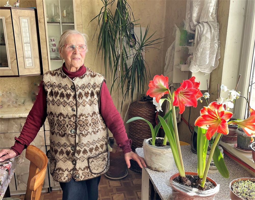 Paklausta, ar neliūdna vienai, moteris pasakojo neturinti kada liūdėti. Jai kompaniją palaiko drauge gyvenantis sūnus ir baltapūkis prie krosnies besišildantis katinas Gliūcinas. Apmaudu tik, kad neseniai amžinojo poilsio teko išlydėti gerą draugę, su kuria bendraudavo ir viena pas kitą į svečius eidavo.