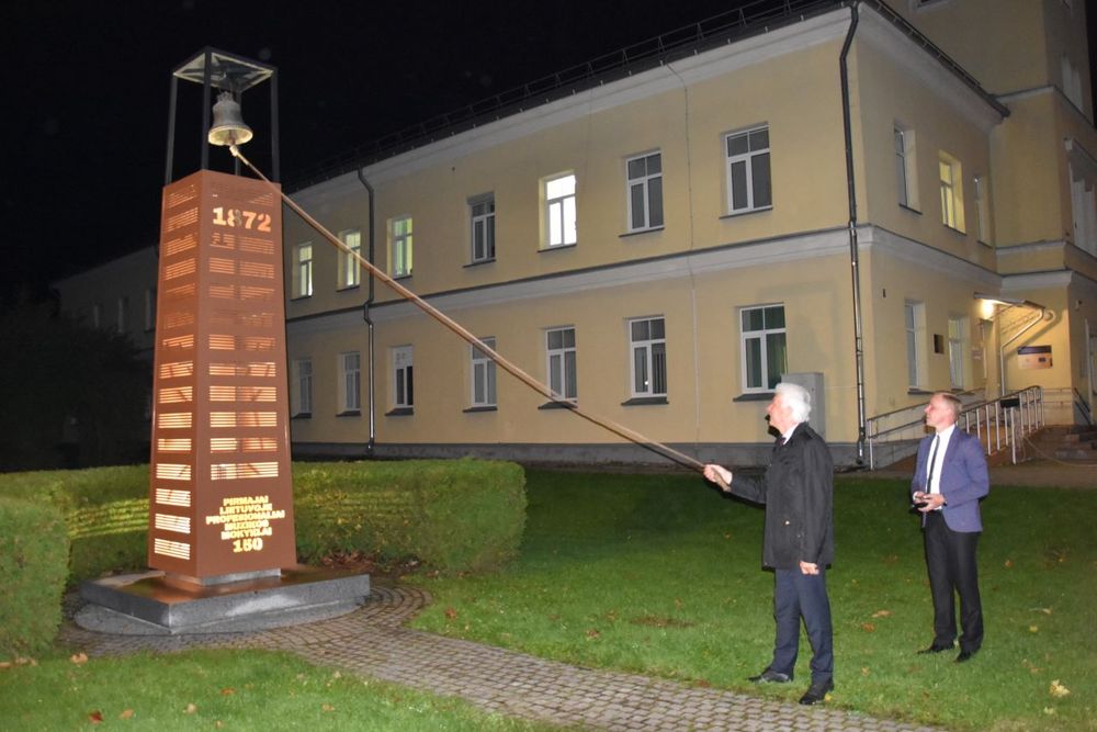 Žodį tarė ir kunigas Č. Degutis. Jam pasidalijus varpo atkeliavimo iš Latvijos istorija, visi persikėlė į mokyklos kiemelį, kur meras A. Černeckis įžiebė šviesą varpinėje. Prieš tai Č. Degutis pašventino šį meninį akcentą.