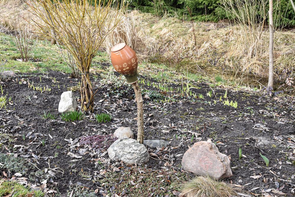 Be to, esą sklype šei­mi­nin­kau­ja­ma neiš­ma­nant: žemės lo­pinė­ly­je prie upe­lio la­biau tiktų pau­pio žo­ly­nai. Ji pa­ti bu­vo su­ma­niu­si jį užsė­ti dau­gia­metė­mis visą se­zoną žy­din­čio­mis žo­lelė­mis, ku­rios, miš­ki­ninkės įsi­ti­ki­ni­mu, to­kio­je vie­to­je tiktų la­biau nei daž­niau­siai prie namų ža­liuo­jan­ti ve­ja.