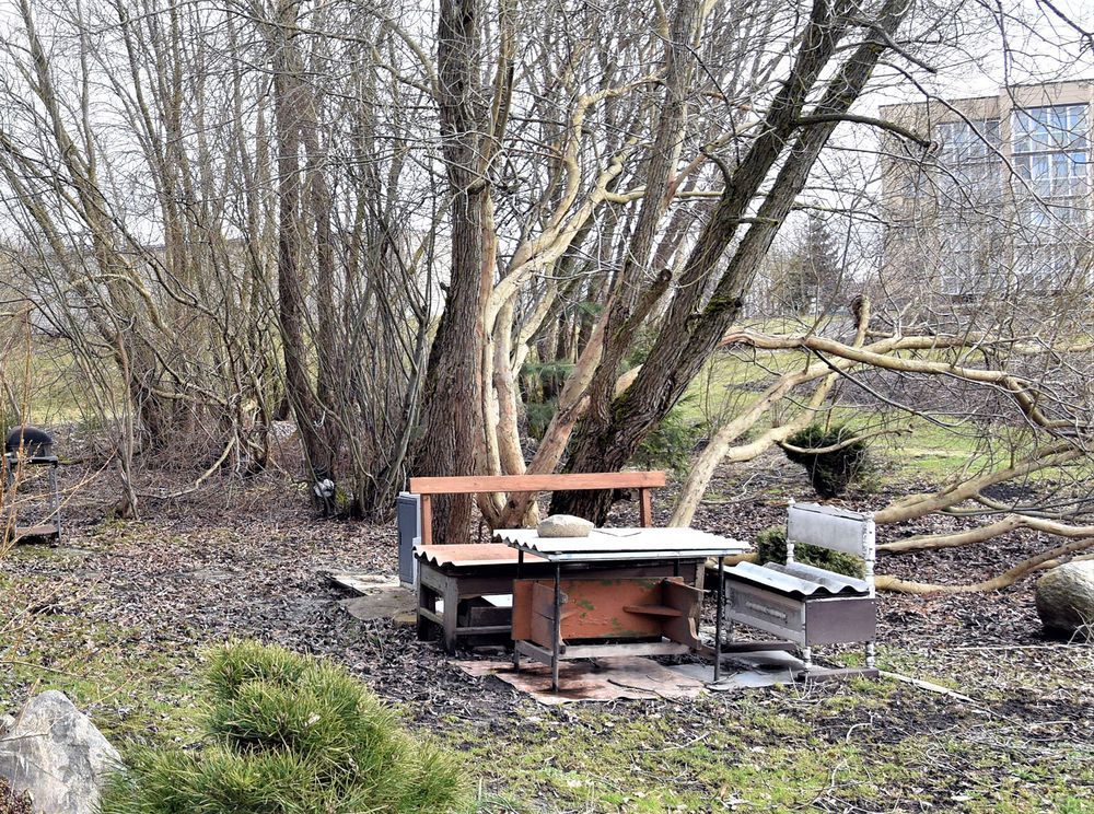 Ne­ži­no­me, kaip šis skly­pas at­rodė anks­čiau, tad ne­ga­li­me ly­gin­ti. Ta­čiau kad prie vie­no ki­to me­de­lio ran­kos tik­rai bu­vo pri­kiš­tos – aki­vaiz­du. Kai ku­rie pa­kar­py­ti, eg­lu­čių apa­tinės ša­kelės iš­ties nu­pjau­tos, o aka­ci­jai viršūnę at­sto­ja už­mau­tas puo­das... Tarp me­de­lių – ne­ma­ži tar­pai, tad ga­li­ma įtar­ti, kaip rie­ta­viškė ir pa­sa­ko­jo, jog čia dau­giau aug­me­ni­jos būta.