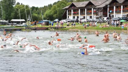 Platelių ežerą skrodė kelios dešimtys plaukikų