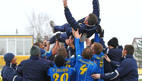 DŽIAUGSMAS: „Kruoja“ užsitikrino A lygos sidabrą. Prie to svariai prisidėjo šį sezoną prie komandos vairo stojęs treneris iš Kazachstano Vladimiras Čeburinas.