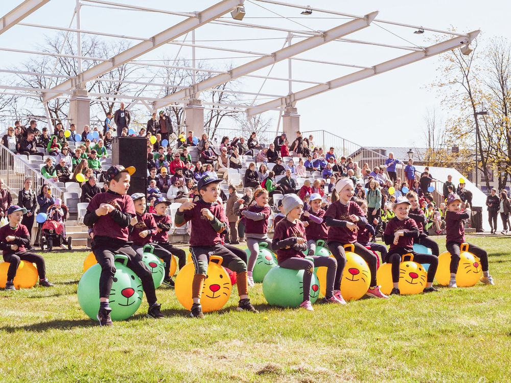 Kaip ir anks­tes­niais me­tais, taip ir šie­met vi­si su­si­rin­ku­sie­ji bu­vo pa­kvies­ti į ma­sinę mankštą. Ją su did­žiu­liu už­si­de­gi­mu at­li­ko tiek dar­že­li­nu­kai, tiek moks­lei­viai, tiek jų pe­da­go­gai. Tie­sa, dar­že­li­nu­kai ir pa­tys pri­statė pa­ro­domąją spor­tinę pro­gramą, po ku­rios išt­ver­min­giau­sie­ji pa­kvies­ti priim­ti iššūkį ir su­da­ly­vau­ti olim­pinės my­lios bėgi­mo-ėji­mo rung­ty­je – įveik­ti 1,9 km at­stumą.