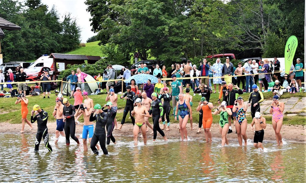 Pirmieji į vandenį brido mažojo maratono dalyviai. Išbandyti savo jėgas 1,8 kilometro distancijoje panoro daugiausiai entuziastų: 52 vyrai ir 21-a moteris.