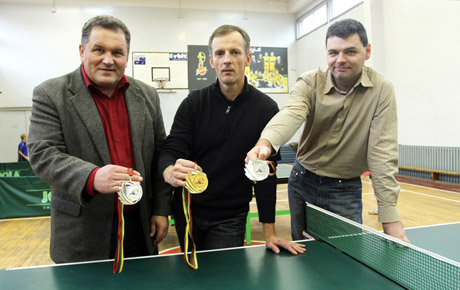 VETERANAI: Nuo pradinių klasių stalo tenisą žaidžiantys (iš kairės) Saulius Mickus, Rolandas Navickas, Andrius Ziminskas.