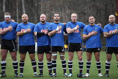 RINKTINĖ: Lietuvos vyrų regbio rinktinė prieš rungtynes su Malta (V. Gaubas – viduryje).