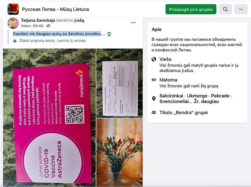 Jos pačios apsisprendimą nesiskiepyti esą nulėmė informacijos trūkumas apie Lietuvą pasiekusias vakcinas ir piliečius klaidinanti Vyriausybės komunikacija.