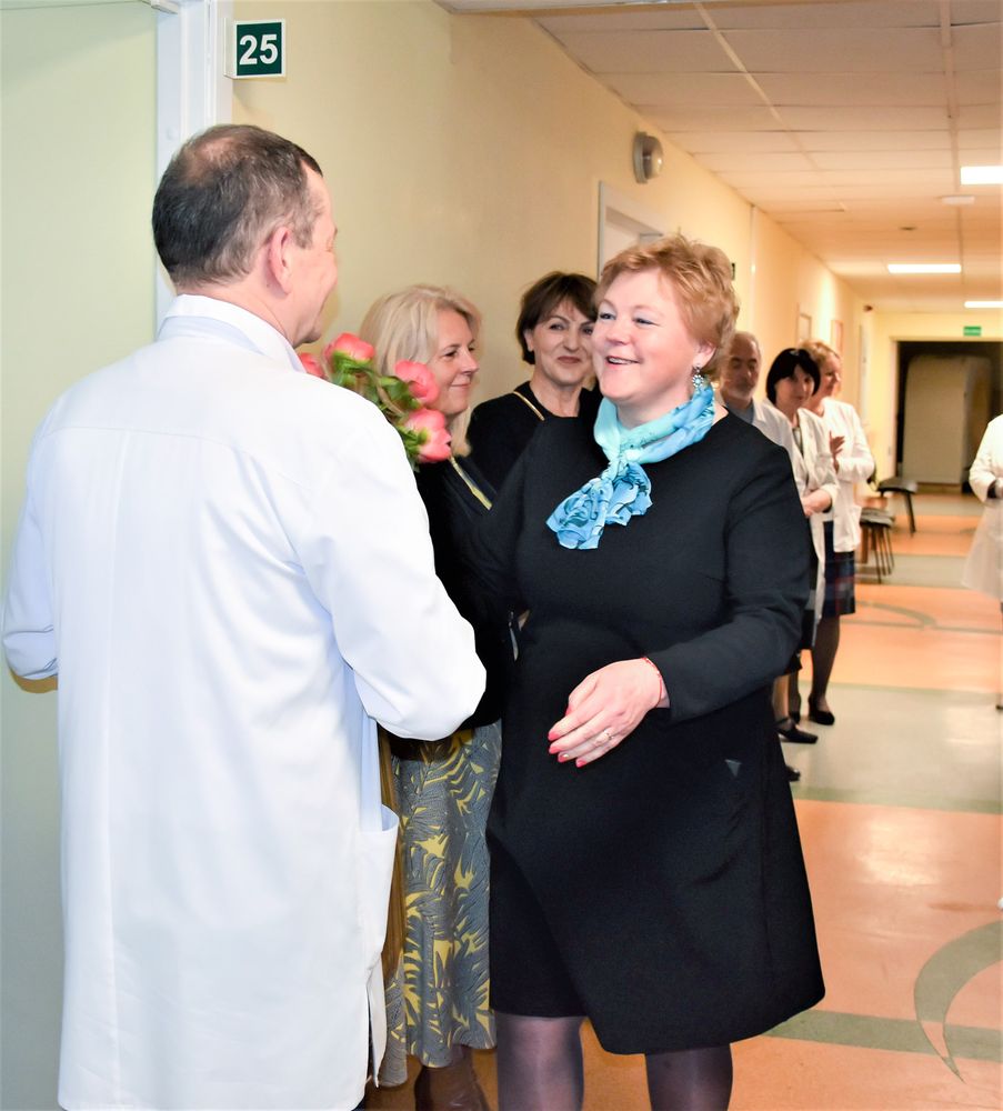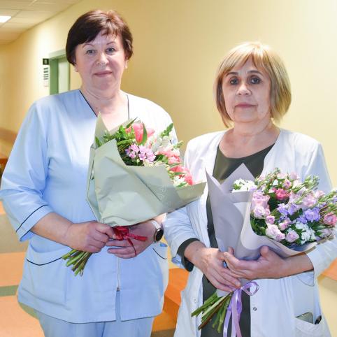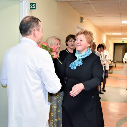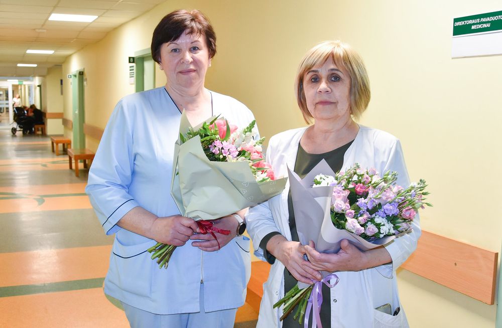 Vy­res­nia­jai slau­gy­to­jai-slau­gos ad­mi­nist­ra­to­rei Virgi­ni­jai Drak­šie­nei, ku­riai bu­vo su­teik­tas nu­si­pel­niu­sio Lie­tu­vos slau­gy­to­jo var­das, ir vy­riau­sia­jai slau­gos ad­mi­nist­ra­to­rei Vi­jo­le­tai Ma­čiui­tie­nei, ku­riai su­teik­tas nu­si­pel­niu­sio Lie­tu­vos svei­ka­tos ap­sau­gos dar­buo­to­jo var­das, už at­si­da­vimą dar­bui gra­žiau­sius žod­žius skyrė ir gėlių įteikė li­go­ninės per­so­na­las, o su „me­dikų mėne­siu“ li­go­ninės bend­ruo­menę svei­ki­no Sa­vi­val­dybės va­do­vai.