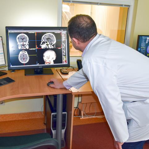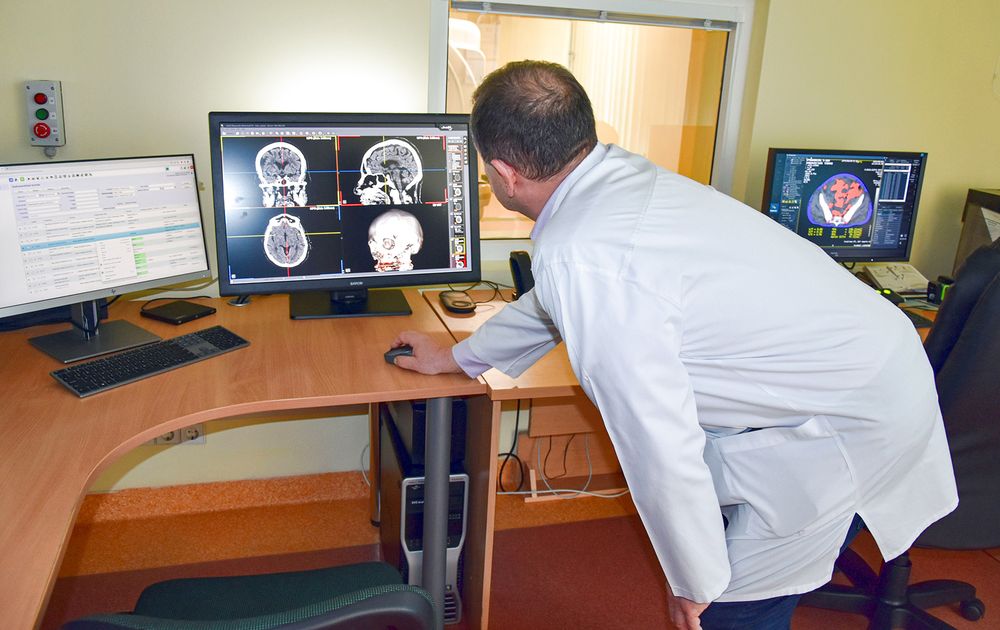 Neu­ro­lo­gi­jos sky­riaus vedė­jas Rai­mon­das Do­vil­tis ne­slėpė, kad la­biau­siai to­kio mo­der­naus apa­ra­to reikė­jo būtent jo va­do­vau­ja­mam sky­riui. „Mes esam iš tos kar­tos, kai viską diag­no­zuo­da­vom plak­tu­ku ir ada­ta“, – kalbė­jo vedė­jas ir pri­si­minė var­gus, kai Plungė­je ap­skri­tai jo­kio kom­piu­te­ri­nio to­mog­ra­fo ne­bu­vo, kai reikė­da­vo lauk­ti eilės va­žiuo­ti ki­tur. Vėliau, įren­ginį įsi­gi­jus, at­si­vėrė di­desnės ga­li­mybės diag­no­zuo­jant li­gas. Na, o ką tik nu­pirk­tas nau­jas to­mog­ra­fas, anot vedė­jo, ma­to­mais vaiz­dais kai ka­da len­kia ir mag­ne­ti­nio re­zo­nan­so apa­ratą. „Pa­vyzd­žiui, jei įvy­ko in­sul­tas, mes ga­lim pa­ma­ty­ti, ko­kioj konk­re­čiai krau­ja­gyslėj už­si­kim­šo“, – pa­sa­ko­jo R. Do­vil­tis.