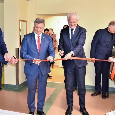 Nau­ja­sis kom­piu­te­ri­nis to­mog­ra­fas bu­vo ne tik iš­sa­miai pri­sta­ty­tas, bet ir pa­šven­tin­tas Plungės Šv. Jo­no Krikš­ty­to­jo pa­ra­pi­jos kle­bo­no, de­ka­no Vy­tau­to Ged­vai­nio, o A. Kli­šo­niui,