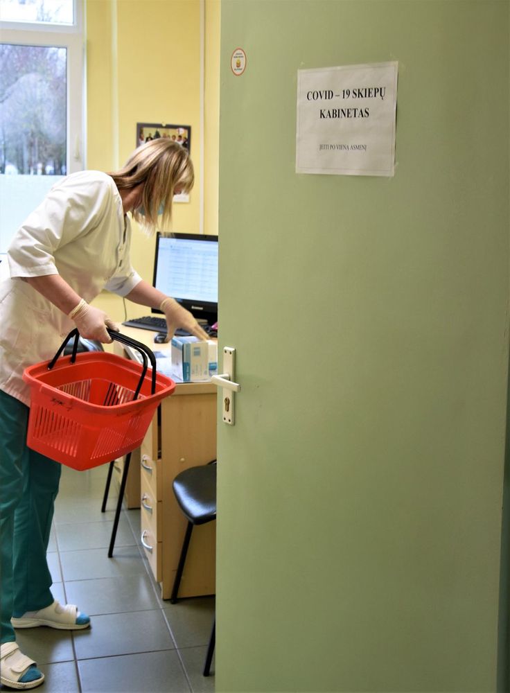 „Šiandien 60 paskiepysim – kas 10 minučių po žmogų. Suplanavom taip, kad nebūtų spūsčių prie kabinetų. Pro vienas duris pasitiksim, pro kitas išlydėsim. O skiepys mūsų pačių slaugytojos, gerai išmanančios ir daug metų dirbančios tą darbą. Tiesa, joms reikėjo susipažinti, kaip skiepyti šia naująja vakcina, nors didelių naujovių ten nėra – standartinė procedūra“, – pasakojo V. Mačiuitienė.