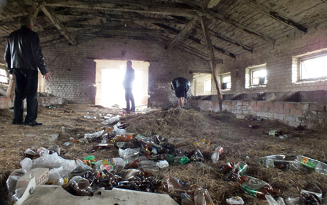 Pati erdviausia pastogė girtuokliavimui – buvusios karvidės. Žmonės dažnai leidžia laiką tarp ėdžių su girdyklomis ir mėšlo šalinimo takų bei šieno likučių.