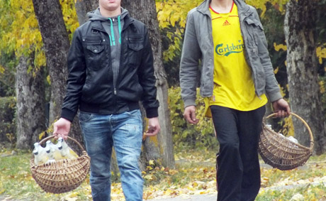 ALKOHOLIS: Iš Sablauskių kaimo parduotuvės jaunimas nešasi alkoholinius gėrimus bulviniuose krepšiuose.