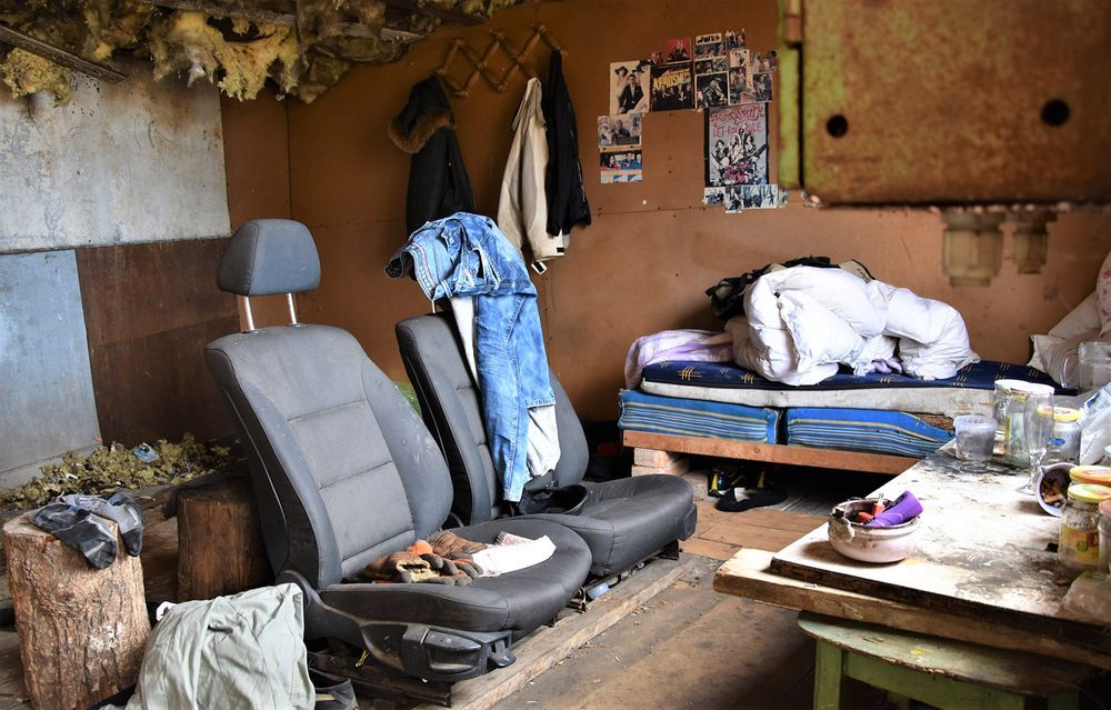 Apleisti, krūmais apaugę pastatai pramoniniame rajone, pasirodo, vis dėlto buvo gyvenami. Pasak vieno iš netoliese veikiančios įmonės darbuotojo, nedideliame apleistame namelyje gal dvejus metus gyveno du vyriškiai, kurie pasirodydavę tik vakarais. Dieną jų darbininkai nematydavo. Ką jie veikdavo dienomis, neaišku, tačiau gyveno nežmogiškomis sąlygomis: jų buveinė panaši į landynę, viduj suversti daiktai ir patalai, visur pilna tuščių butelių bei kitų šiukšlių.