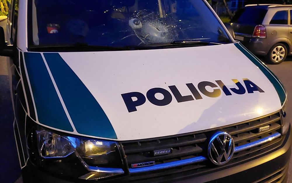 Vandalai nusitaikė į policijos automobilį