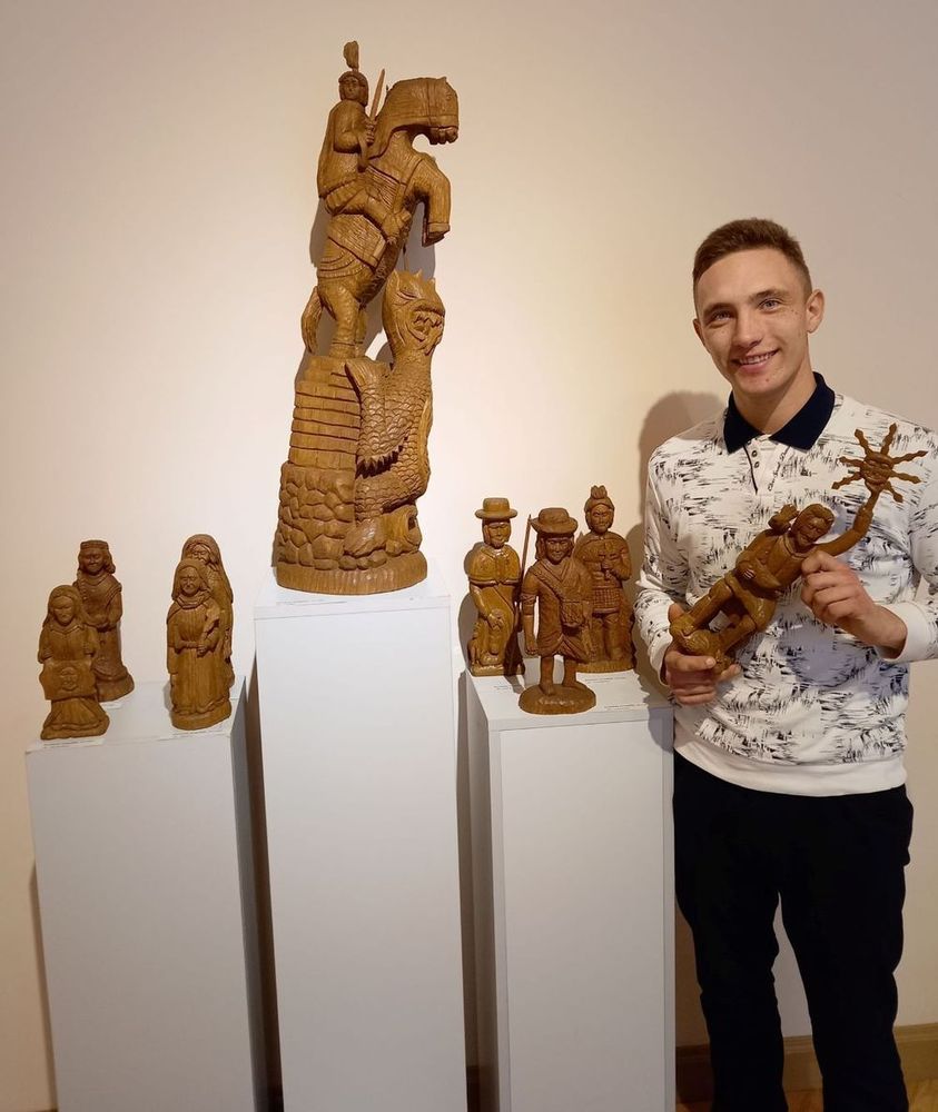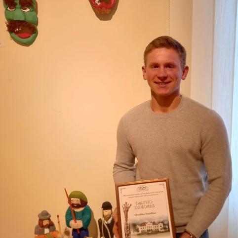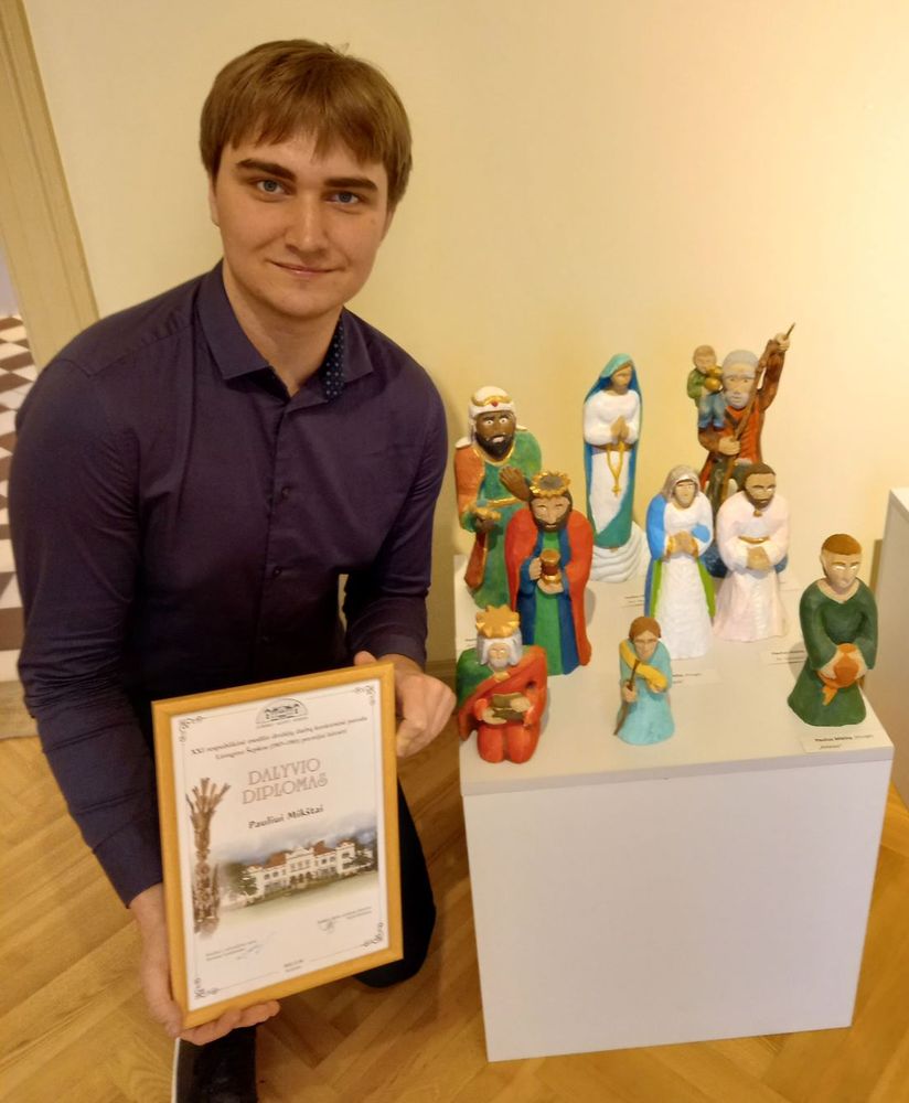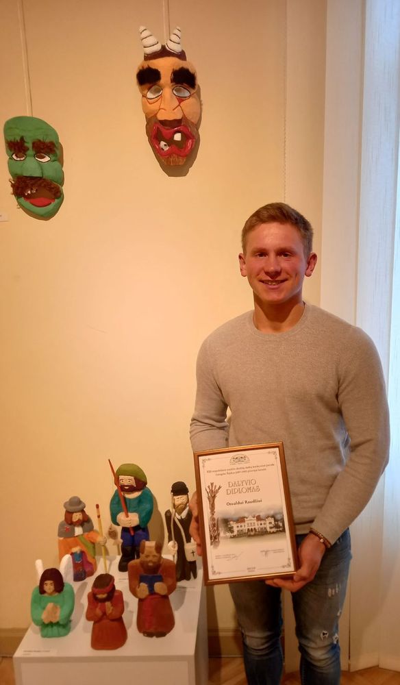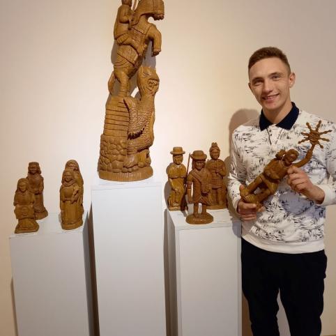 Jaunasis drožėjas O. Raudys išdrožė „Angelo“, „Žvejo“ ir kitas skulptūrėles, pristatė ir Užgavėnių kaukes.