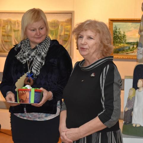 Jubiliatus bei visus kūrėjus, pristačiusius savo kūrybos vaisius Kultūros centre, pirmoji pasveikino J. Miltenė, sukaktuvininkams įteikusi simbolinius medalius ir dovanėles. Žinoma, ji nepamiršo ir kitų parodos autorių. Kiekvieną iš jų palydėjo geru žodžiu, padėka ir linkėjimu nesustoti kurti bei nepristigti tam įkvėpimo.